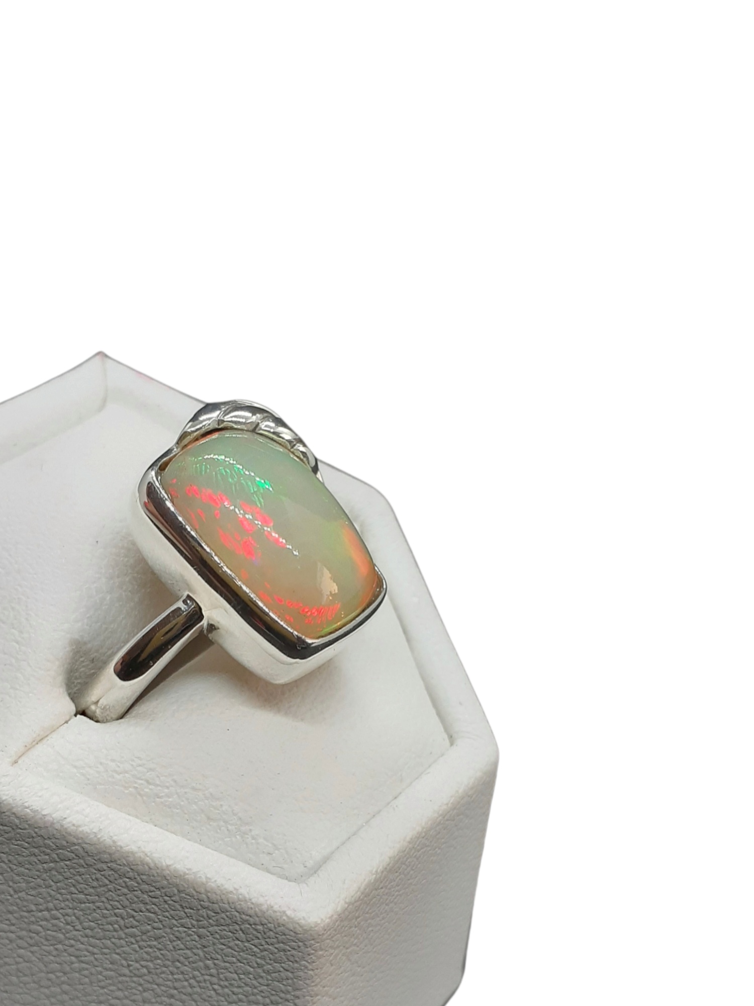 • Opale Éthiopienne Exceptionnelle : La pierre, en provenance d’Éthiopie, est un exemple remarquable de beauté minérale. Avec ses reflets irisés et sa clarté éclatante, elle capte la lumière de façon spectaculaire.
