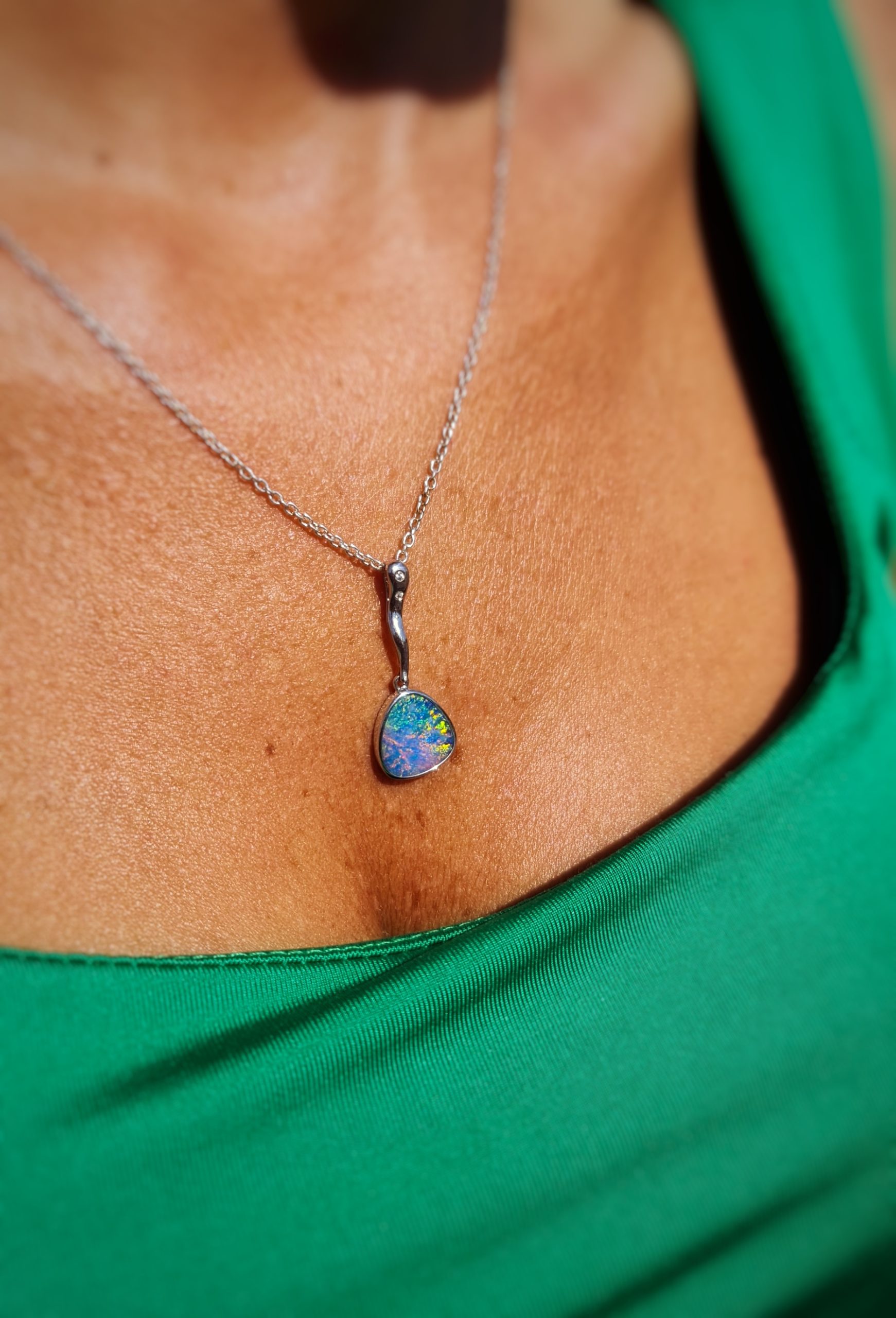 Pendentif en Opale Australienne avec Bélière Ondulée