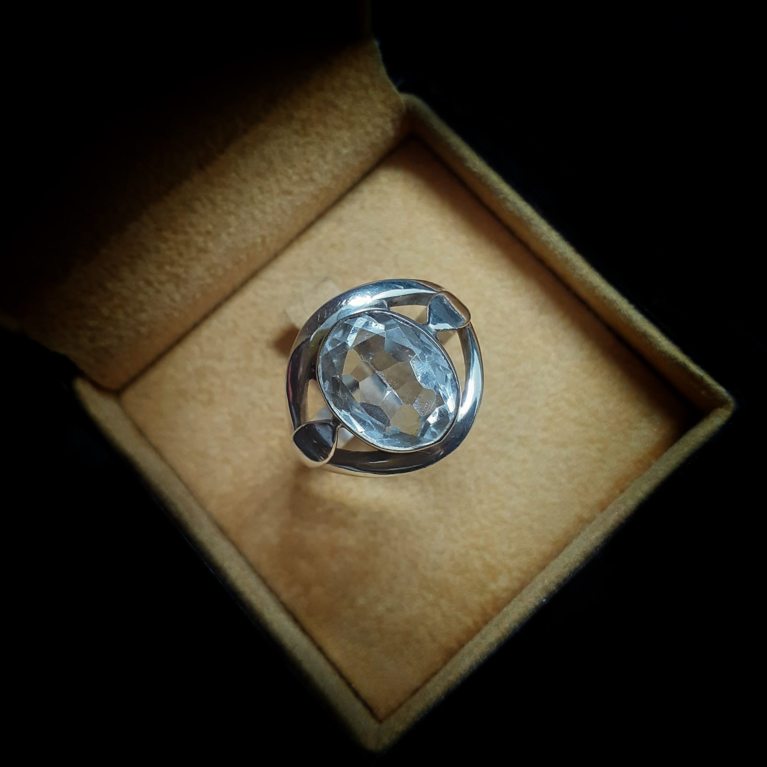 Très jolie bague en argent 925 sertie d’un quartz taillé en facette.